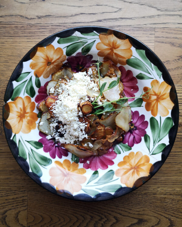 З цього моменту і досі я бавлюся у своєрідну гру — знаходжу старі тарелі, якщо пощастить, то цілі, але зазвичай тріснуті і занедбані. Відмиваю і даю їм маленький «момент слави» — готую страву, яка пасуватиме саме їм. Роблю фото та фіксую це у своєму проєкті #що_на_тарелі. Виглядає, ніби сам таріль підказує мені що на нього покласти, як порізати та як заправити.